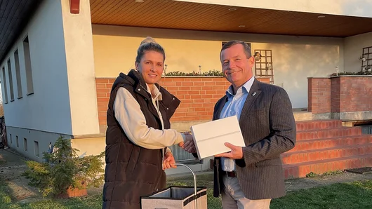 Pömmelte. Friedrich Hülsenbeck, der Geschäftsführer des EMS-Tochterunternehmens GlasCom Salzlandkreis GmbH, hat allen Grund zur Freude. Mit Nicole Warschkau konnte er jetzt die mittlerweile 2.000ste Kundin begrüßen. Die junge Frau wohnt im Barbyer Ortsteil Pömmelte und setzt bei Telefonie und Internet auf ein leistungsstarkes Paket der GlasCom.