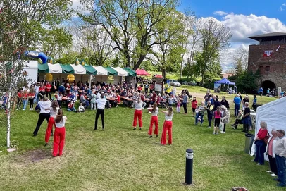 Nach den Angaben der 13 Tourenleiter haben sich ihnen exakt 277 Radlerinnen und Radler angeschlossen. Hinzu kamen individuell angereiste Gäste per pedes, Fahrrad oder Pkw. Sie alle konnten sich auf dem Burggelände sportlich betätigen, sich Führungen durch die Burg oder die Straußenfarm anschließen, an Infoständen stöbern, Kulinarik genießen und dem vielfältigen Bühnenprogramm lauschen.